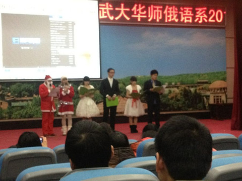 12月29日,第三届武大华师俄语系2013新年联谊会在武汉大学华体会平台app大礼堂成功举行。我校俄语系及武汉大学俄语系的领导、老师和全体同学共聚一堂,喜迎新年。晚会由我院俄语系研究生、武汉大学俄语系学生及两校外教共同主持。