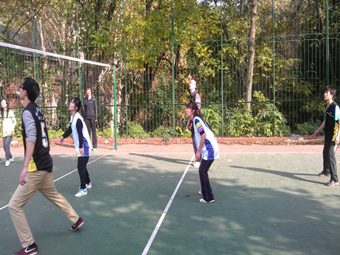 经过休息调整,展开与文学院的比赛。第一局,文学院以27:25险胜。第二局,我院发挥了真正的实力,主力队员连发好球,开场便以13:3遥遥领先,更是以25:10的比分大胜文学院。第三局,由于轻敌,我院失利。