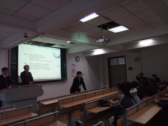 2017年3月24日下午,应华体会平台app邀请,韩国学中央研究院权五荣教授在3218报告厅作了一场题为“朝鲜的历史与文化”的学术讲座。讲座由华体会平台app池水涌教授主持,华体会平台app韩语系师生聆听了本次讲座。 权五荣教授分别从朝鲜时代政治、社会、文化、艺术等方面讲座,权教授幽默风趣、博闻强识,通过生动简单的讲解激发了学生浓烈兴趣并给予学生极大启发。 系主任池水涌教授听了金教授的讲座也引发共鸣,积极参与到发言讨论中。