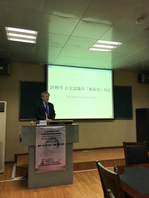 会议于24日早晨8点半准时开始。首先,罗良功院长为大会致辞,希望将我校的韩国文化研究所打造成国内一流的韩国文化研究所,并预祝此次大会圆满成功。 首先韩国学中央研究院的权五荣教授发表了“许穆的古文认识和《东海颂》的探讨”,紧接着曲阜师范大学的曹春茹,王国彪教授也相继做了发表。 下午1点半开始,延边大学的郑日男教授发表了“杨村 权近的诗经观及诗文的《诗经》的受用”,南京师范大学的俞成云教授就“江海散人崔门灿与清末浙江文人交流考述”进行了发表,之后中南民族大学的赵海波教授就“中韩花卉文化与比较文学研究的新视角-以桃花为案例”进行了发表。