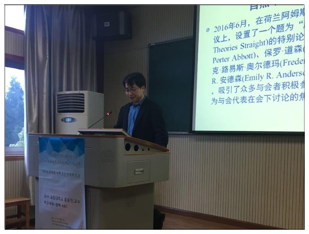 2017年4月25日下午,上海交通大学华体会平台app尚必武教授为外院师生作了题为:“当代英国小说的非自然叙事:范式、作品与阐释”的学术讲座。华体会平台app徐彬教授担任此次讲座的主持人,英语系主任方幸福教授出席了这次讲座,外院英语专业研究生、博士生踊跃参与并在讲座之后积极提问,讲座现场气氛活跃。 在梳理非自然叙事学产生背景的基础上,尚必武教授指出:一、叙事学的目的在于如何科学地考察作者讲述故事的方式,分析作品内在叙事结构,在此基础上讨论作者的叙事技巧和动机;二、非自然叙事学已经成为叙事学理论中一个激动人心的新领域,为文学研究提供了新方法。针对“小说是否已经死亡”的论题,尚教授还指出以Zadie Smith和David Mitchell等为代表的当代英国新生代作家的创作证明小说非但没有死还以更多更好的叙事形式展现出勃勃生机;面对当代小说的勃兴,文学评论家们应该具有一定的历史使命感。此后,尚教授提出非自然叙事中的五大非自然因子,并对这些非自然因子逐一举例说明。讲座过程中,尚教授展现出深厚的叙事学理论功底和文本分析能力,帮助华师师生扩宽了文学研究的视野。 徐彬教授对尚教授讲座的点评是:“尚教授的非自然叙事理论观点走在国际前沿。尚教授的知识储备广博,文学批评的审美取向别具一格。”。 讲座结束后,方幸福教授就“俄罗斯形式主义中的陌生化一说与非自然叙事的异同以及非自然叙事中的意识形态等问题”,博士生朱喜奎同学就“经典文学作品中的非自然叙事现象”向尚教授提问,均得到尚教授的详细解答。参加本次讲座的师生获益匪浅。