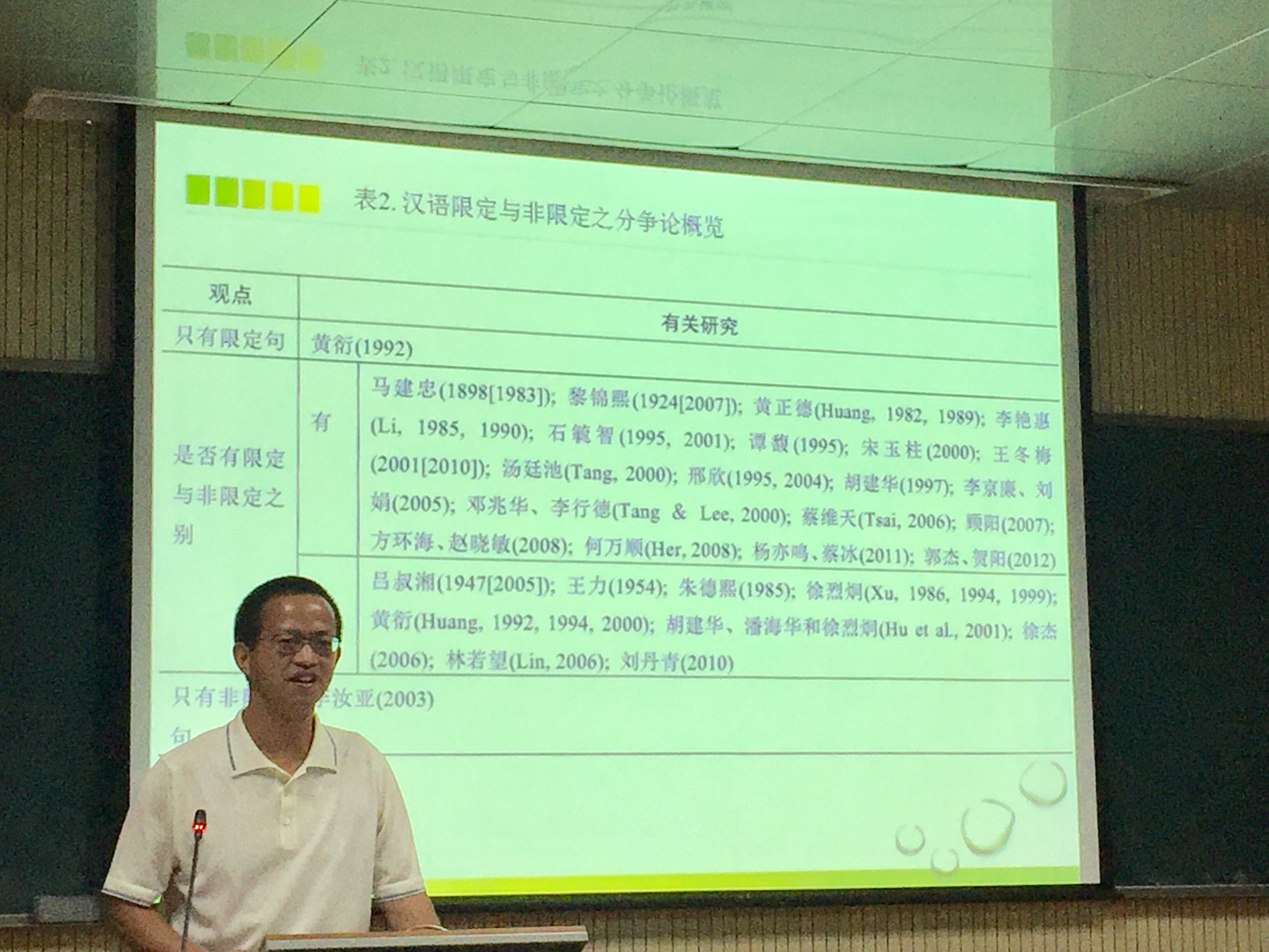 2017年6月5日上午,应华体会平台app邀请,上海交通大学博士生导师杨炳钧教授在3402报告厅作了一场题为“英汉动词的限定性”的学术讲座。讲座由华体会平台app副院长王勇教授主持,华体会平台app部分教师、语言学方向博士、硕士研究生聆听了本次讲座。