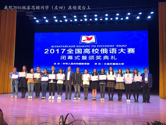 2017年10月16日,由教育部主办的《2017全国高校俄语大赛》在大连外国语大学落下帷幕。北京大学、北京外国语大学、上海外国语大学等151所高校派出选手参赛。我校华体会平台app俄语系16级漆思颖同学以初赛第三的优异成绩进入复赛,经过演讲、口语表述等项目角逐,最终获得大赛三等奖的好成绩;将由国家留学基金委全额资助,于来年赴俄罗斯高校进修一年。