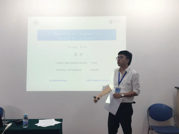 熊霄老师演讲的主题是“Haunting as Language in Ouyang Yu’s Poetry”。Haunting是快速变化的世界中不稳定、让人不安的状态,特别是西欧殖民世界引发的外来与本土语言、文化的碰撞与不同族群在世界范围内迁徙所产生的对原有世界(政治、经济、文化等)秩序的改变,其本质是不同文化所代表的权力的角力。Haunting关注的是这种权力角力导致的权力分级与不平等、由此而生的所谓的优越感、歧视、敌对、焦虑、恐惧等、和由强势权力割裂的群体或个体的过去与现在之间的联系以及记忆的扭曲与碎片化。Haunting存在于过去与现在、旧与新、他们与我们、陌生与熟悉、可视与不可视、殖民与被殖民等二元化之中。熊霄老师对haunting的研究指出这些二元化只是一种想象的不稳定的权力结构,致力于通过去二分化、去中心化以消解这些二元之间的界限与壁垒并提出人类应当以积极、不断变化、融合的心态去面对这些相对固化的彼此孤立的结构。欧阳昱作为唯一坚持用中英双语写作的澳洲华人作家,其诗歌既反映了漂流于两种文化之间的困境,也提出了在旧的范式与结构之上建立新的范式与结构,或者是一种超越范式与结构的“你中有我,我中有你”、“新中有旧,旧中有新”的融合状态。