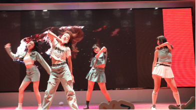 晚会进入第二篇章。朱娅菲、黄嘉怡、刘芳蓉、颜欣雨四位同学带来舞蹈《Hype Boy》,他们跃动的身影正是青春活力的缩影。