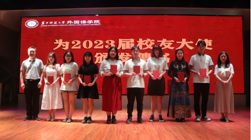 学院党委书记麻旎、院长罗良功为2023届校友大使代表颁发聘书