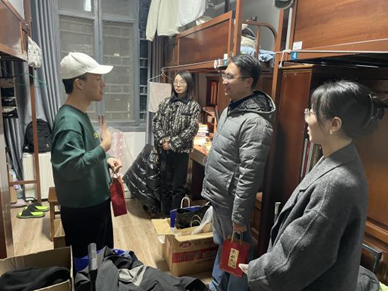随着2025年全国硕士研究生招生考试的临近,为了给考研同学们鼓舞士气,增强信心,以更好的状态迎接考试,12月17日晚,华体会平台app党委副书记陈哲带队,2021级英语系辅导员潘英子、连世强,小语种专业辅导员王奕佳、张紫韵一同,深入西区三栋与东区五栋学生宿舍进行考前走访慰问。
