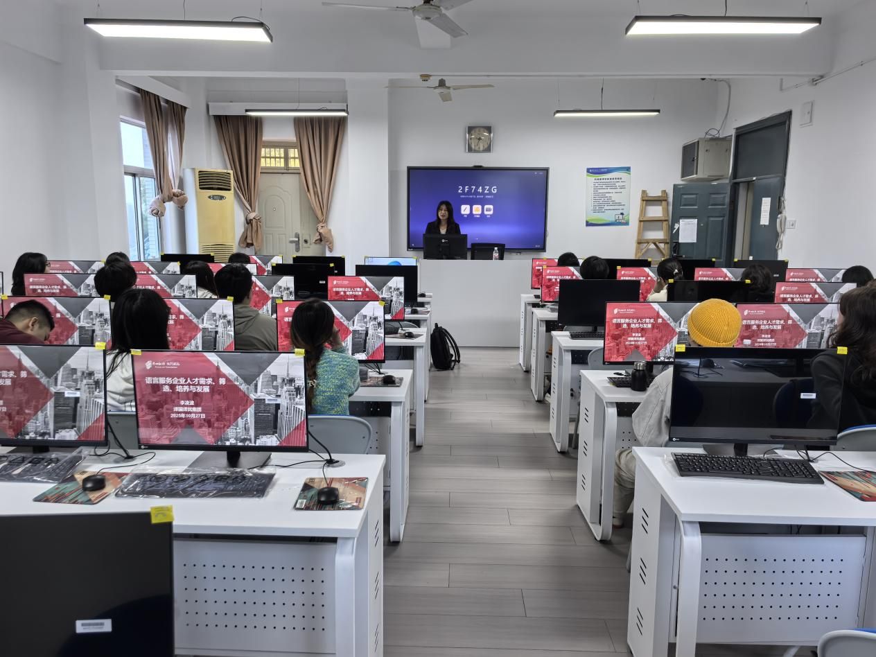 针对同学们最关心的译员岗位,李凌波女士展示了她自己提出的“综合能力模型”:除了需要具备扎实的翻译实践量、CATTI证书等“硬实力”外,可视化能力(如参与售前支持、现场沟通)以及服务精神、沟通配合等“软实力”同样至关重要。她还详细介绍了企业的考核与晋级体系,为同学们的学业规划与未来职业发展提供了清晰指引。