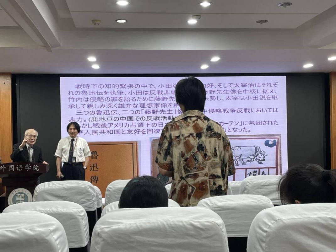 在讲座中,藤井教授先介绍了鲁迅先生与日本文学之间的影响。他以鲁迅先生为切入点,首先介绍了夏目漱石为代表的日本文豪对鲁迅先生的影响,随后介绍了以增田涉、竹内好为代表的日本作家所受鲁迅先生的影响。藤井教授还通过展示鲁迅文学的多种日译本;介绍鲁迅作品入选日本初、高中教材等情况,充分表明了鲁迅先生在日本的巨大影响力,详实的介绍丰富了在场师生们对鲁迅先生的认识,加深了对以鲁迅先生为桥梁的近代中日文化交流史的理解。