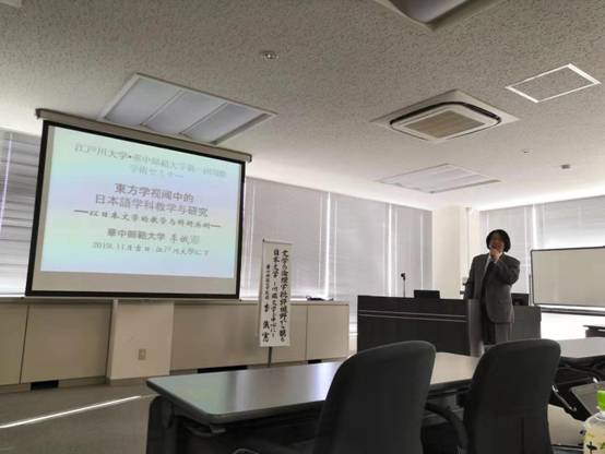 2019年11月30日,我院副院长·日本文化研究所长·日语系主任李俄宪教授率领日语系吕卫清副教授和娜仁图雅副教授应邀出席由华中师范大学校际交流校日本日本江户川大学主办的国际学术会议。这次会议是依托我校与江户川大学校际友好学校的平台,以我院【日本文化研究所】与日语系为主体,与江户川大学相关专业和机构对接,联合举办的第一国际会议。