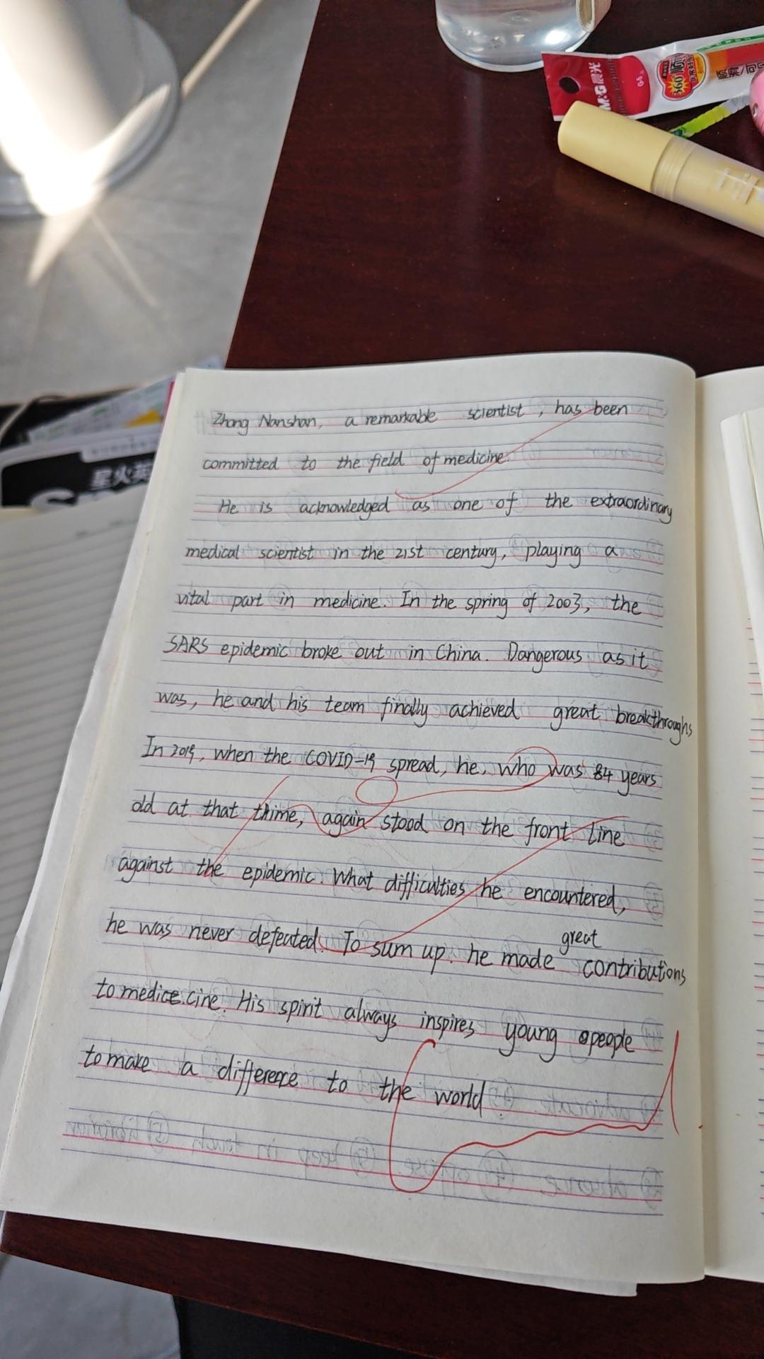 高中英语学习重视基础知识的积累,单词及课文背诵是学生们日常的重要学习活动。作为实习老师,及时批改学生听写背诵任务,让学生及时了解到自己的不足之处,有助于学生精准查漏补缺,提高学习效率。在作业批改过程中,我们也要多鼓励学生,激发他们的学习兴趣,让他们更加自信。