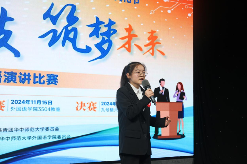 11月23日晚,华中师范大学第三十二届“创新杯”科学文化节英语演讲比赛于九号楼六楼演播厅成功举办。本次活动由共青团华中师范大学委员会指导,共青团华体会平台app委员会主办。华体会平台app英语系教师蒋文颖,外教John Miller、Lisa,2024级英语口译研究生李星萍,2021级英语系本科生邬丽婷,2022级英语系本科生陈思恬担任评委。华体会平台app党委副书记陈哲、校团委副书记杨天卓、城市与环境科学学院团委书记刘新星及华体会平台app团委副书记徐圆作为嘉宾出席本次比赛。2024级英语系本科生颜逢、张紫宾担任主持人。