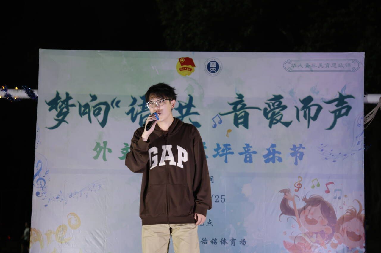 5月25日,外文歌曲草坪音乐节在佑铭体育场圆满举行。本次活动以“梦响‘语’共,音爱而声”为主题,旨在营造多元文化氛围,帮助青年学子培养自身的国际视野和文化交融意识。华体会平台app团委书记吴波、团委副书记徐圆、辅导员张志彬、邱领出席本次活动,2022级英语系学生陈柯理和24级日语系学生黄明帆担任本次活动的主持人。