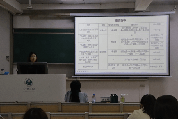 在经验分享环节,燕思颖结合自身丰富的比赛经历,从重要赛事、项目选题、项目成员、冲刺计划四个方面向同学们传授了宝贵的经验和实用技巧。