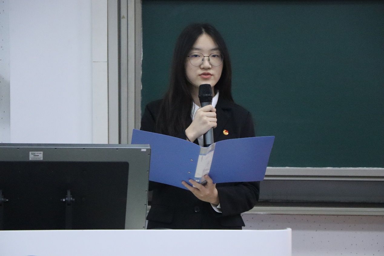 学院学生会执行主席罗诗怡发言,她对各位新成员的加入表示热烈欢迎,并从守护初心、浓厚氛围、做实小事、积极创新、打造品牌等方面对新成员们提出期待,鼓励大家共同努力,打造有高度、有深度、有温度的团学骨干团队。